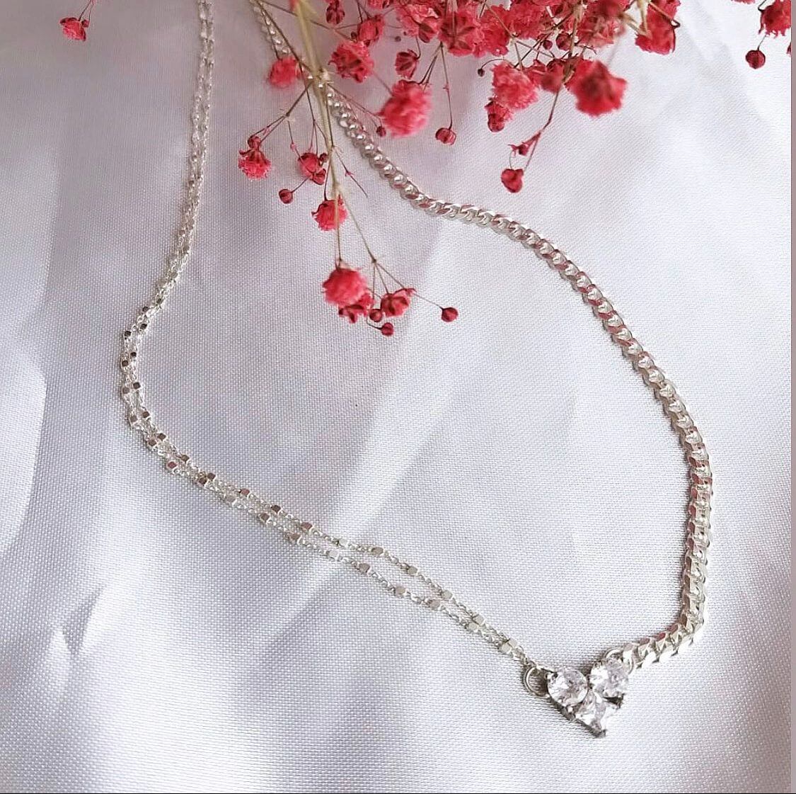שרשרת משולבת של 2 סוגי שרשראות בשילוב טליון לב כסף 925 אורך 38 סמ ותוספת שרשרת הארכה